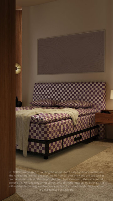 HILADUO is committed to creating the world's top luxury handmade mattresses. Selecting rare natural animal and plant fibers from around the world as raw materials, such as Siberian horsetail hair, Australian wool, Alashan camel hair, Jiangsu silk, Xinjiang long staple cotton, etc., traditional techniques are perfectly integrated with modern technology to become a symbol of a noble lifestyle. Each mattress is a masterpiece of sleep art.